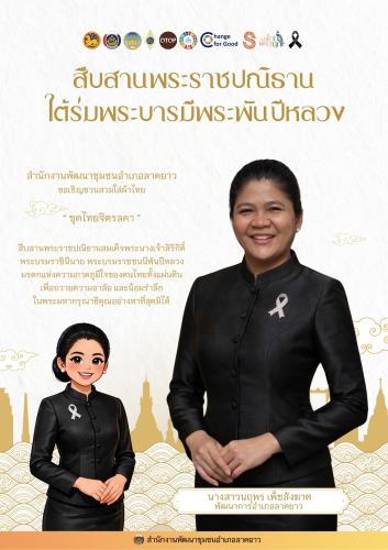 สำนักงานพัฒนาชุมชนอำเภอลาดยาว ขอเชิญชวนประชาชนร่วมสวมใส่ผ้าไทย "ชุดพระราชนิยม" มรดกแห่งสมเด็จพระนางเจ้าสิริกิติ์ พระบรมราชินีนาถ พระบรมราชชนนีพันปีหลวง เพื่อน้อมรำลึกในพระมหากรุณาธิคุณอย่างหาที่สุดมิได้ และร่วมเทิดพระเกียรติสมเด็จพระพันปีหลวง