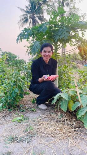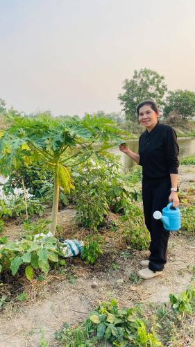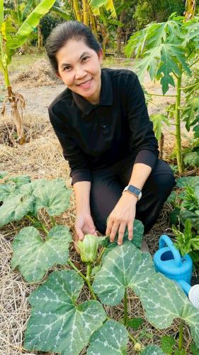 ปลูกผักสวนครัวที่ปลูก ได้แก่ มะเขือ พริก มะเขือเทศ มะเขือยาว มะละกอ กล้วย ฟักทอง กะเพรา ข่า ตะไคร้